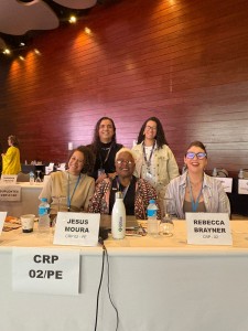 O Conselho Regional de Psicologia de Pernambuco esteve representado pela Maria de Jesus Moura CRP-02/4.617, Conselheira Presidenta do CRP-PE; Runá Costa Paiva CRP-02/19.319, Conselheira Vice-presidenta do CRP-PE; Rebecca Brayner Pereira CRP-02/15.710, Conselheira Tesoureira do CRP-PE, Aida Carneiro Barbosa Rodrigues CRP-02/19.160, Conselheira Secretária do CRP-PE, e a Conselheira Magda Michelle Almeida Alves CRP-02/19.988 reafirmando o compromisso institucional com a participação ativa nos processos decisórios do Sistema Conselhos.