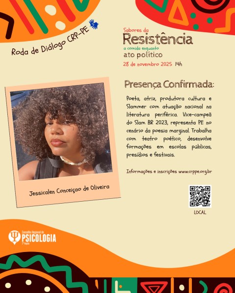 Inscreva-se através do link: https://www.sympla.com.br/evento/roda-de-dialogo-sabores-da-resistencia-a-comida-enquanto-ato-politico-psicologia-antirracista/3207555 . Destacamos que as vagas são limitadas de acordo com o quantitativo máximo do local. Assim como, confere certificado de 4h. O momento será acessível em Libras, reforçando o compromisso do CRP-PE com a inclusão.