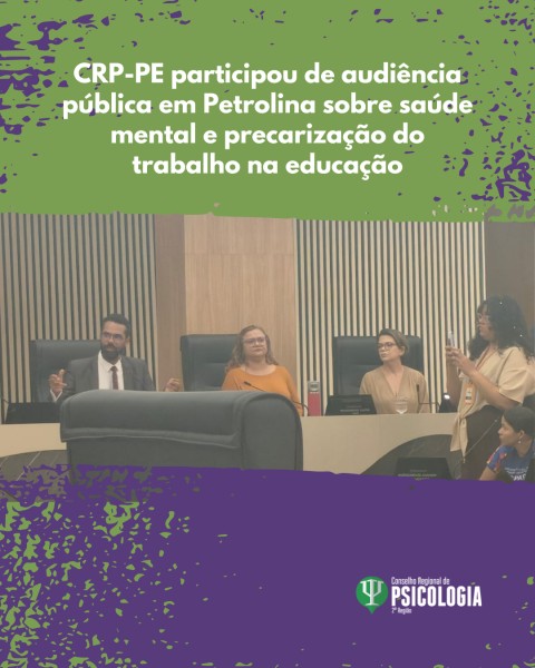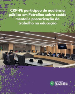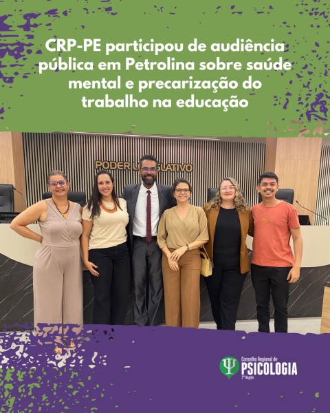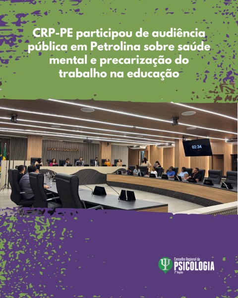 O Conselho Regional de Psicologia de Pernambuco – 2ª Região (CRP-PE) marcou presença, no dia 12 de novembro, em audiência pública promovida pela Câmara Municipal de Vereadores de Petrolina para discutir saúde mental e precarização das trabalhadoras e trabalhadores da educação. A participação da autarquia respondeu a convite oficial encaminhado pelo Legislativo municipal.